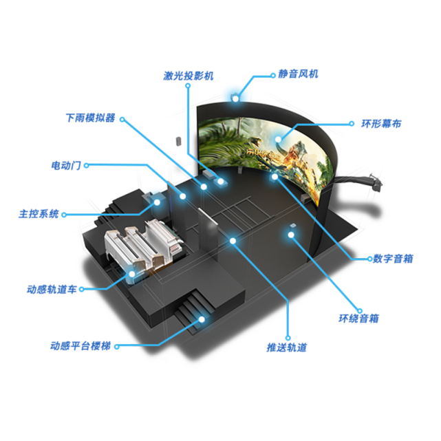 軌道影院環(huán)幕弧度有多種選擇,環(huán)形幕半徑通常有270弧度,還可根據(jù)場地具體情況進(jìn)行個(gè)性化設(shè)計(jì)和施工,保證影院效果。
